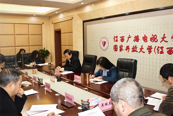 易小明强调,我们要严格按照省委统一要求,认真贯彻落实《中国共产党宣传工作条例》精神,一要进一步加强学校的宣传思想工作,充分利用好现有条件,在持续强化对外宣传的基础上,围绕中心工作、服务发展大局,充分引导校内宣传思想工作。二要严格落实“阵地长”负责制,要与落实意识形态工作紧密结合起来,构建环环相扣的责任落实体系。三要强化校内宣传思想工作的管理督导、日常检查和考核评估,从严执行《江西广播电视大学部门(单位)网站建设运行测评办法》等既有工作制度与标准规程。四要加强学校宣传队伍建设,开展“网格化”宣传思想工作,充分发挥各级党组织宣传委员与各部门(单位)信息员的作用,打造一支政治过硬、本领高强、作风优良的专兼职宣传思想骨干队伍。