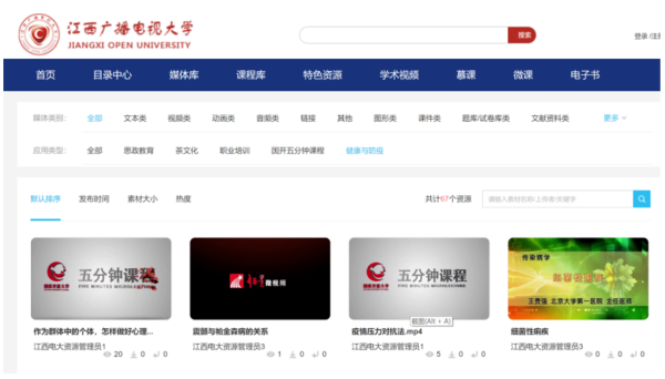 疫情当下,江西广播电视大学积极引进并发布相关专业防疫课程和教学资源,以优质资源助力全民防“疫”抗“疫”。主要课程有:《认识新型冠状病毒》、《密切接触者要如何隔离》以及《新型冠状病毒防疫安全公益课》等。