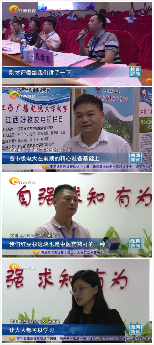 7月21日,江西教育电视台《教育新闻》以《江西电大举行第六届“互联网+”大学生创新创业大赛》为题,报道我校成功举办第六届中国国际“互联网+”大学生创新创业大赛江西广播电视大学初赛。