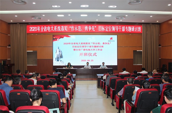 为深入学习贯彻习近平总书记关于教育的重要论述和视察江西重要讲话精神,聚焦“作示范、勇争先”目标定位,推动全省电大高质量发展,8月25日下午,2020年全省电大系统落实“作示范、勇争先”目标定位领导干部专题研讨班暨全省广播电视大学工作会在江西省上饶市弋阳县方志敏干部学院正式举办。方志敏干部学院常务副院长、弋阳县委副书记刘伟明特邀出席,江西广播电视大学校领导、各市级电大党政主要领导以及江西广播电视大学全体处级干部和应用技术学院负责人参加。研讨班暨工作会举行了简短而隆重的开班仪式,由江西广播电视大学党委副书记、校长朱爱莹主持。