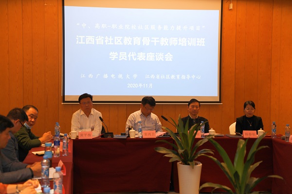 11月13日下午,省委教育工委委员、教育厅副厅长裴鸿卫一行莅临我校承办的江西省社区教育骨干教师培训班,与学员代表进行亲切座谈。校党委书记易小明,校党委副书记、校长黄平槐出席座谈会。来自各地市、区县的16名学员代表,学校社会教育学院全体人员参加座谈会。会议由黄平槐主持。