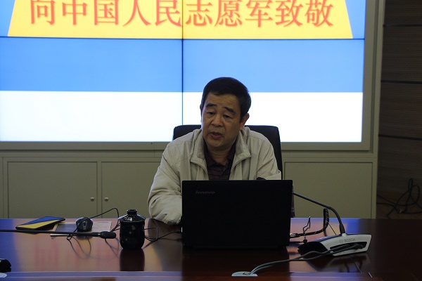 邱东升从“战争概况”、“历史背景”、“战争影响”等八个方面,深刻地阐述了抗美援朝战争的历史背景和重要意义。中国人民伟大的抗美援朝战争,是保卫和平、反抗侵略的正义之战,打出了中国的国威和人民军队的军威,创造了以少胜多的范例,弘扬了人民军队英勇革命、不怕牺牲的精神,严酷战争进一步锤炼了人民子弟兵的坚强意志;抗美援朝战争的胜利为世界和平与人类进步事业作出了巨大贡献。