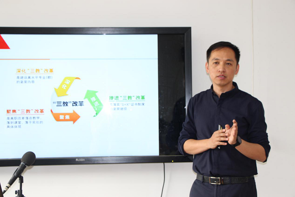 高职学院电子商务分院院长祝维亮以高职农村电商人才培养模式实践与探索为例,从“三教”改革背景基础、电商专业建设思路、目前主要做法及成效三个角度与在场教师分享了我校电子商务专业、课程建设的经验和体会。