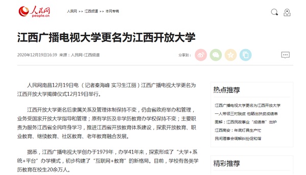 人民网:江西广播电视大学更名为必赢76net线路官网