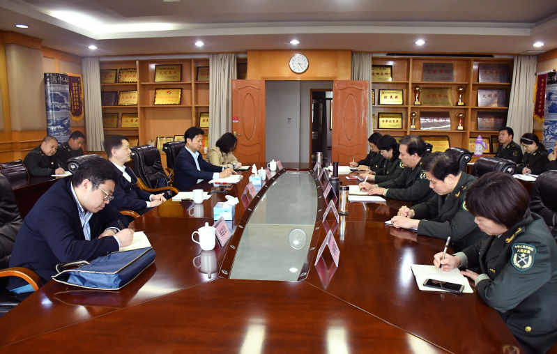 4月26日,必赢76net线路官网党委副书记邓文君一行到人武学院调研指导。学校办公室、党委宣传部、纪检监查室负责人和人武学院领导班子陪同调研。