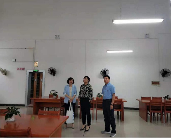 冯豫红实地考察了图书馆公共阅览区、电子阅览室、书库、读书分享会活动场地以及场馆的消防安全情况。郭英就图书馆环境改善及面临的困难等工作进行了详细汇报。