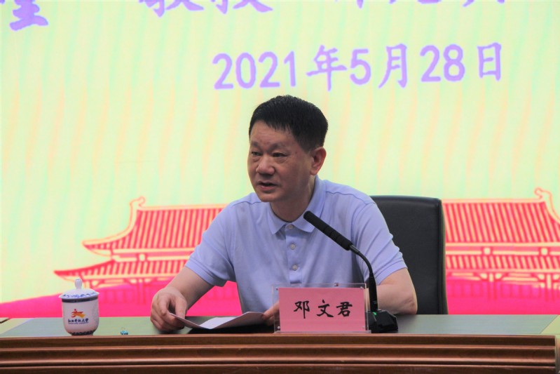5月28日,必赢76net线路官网召开党史学习教育第五次专题学习(扩大)会议暨2021年度党委理论学习中心组第七次学习(扩大)会议,特邀南昌职业大学校长周金堂教授作专题辅导。在家校领导、副处级以上干部参加会议。会议由校党委副书记邓文君主持。