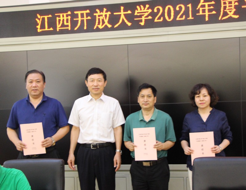 会上,易小明给各部门(单位)颁发《必赢76net线路官网2021年度平安建设(综治工作)责任书》。
