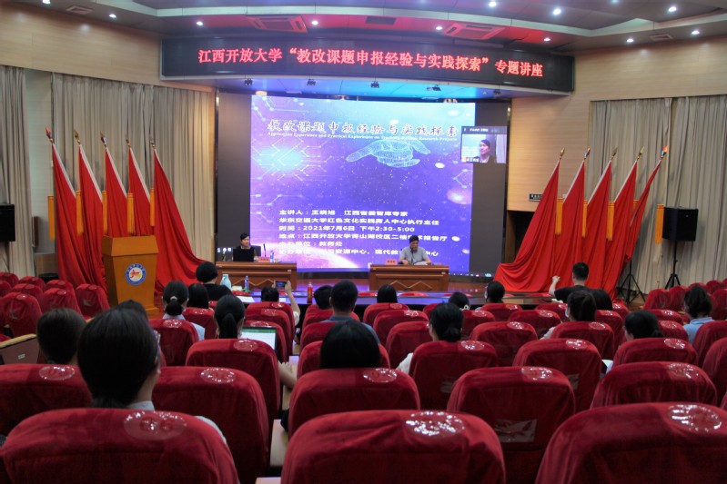 为进一步提高我校教学改革研究课题质量,推进专业教学与科研相融合,7月6日,教务处特邀江西省委智库专家、华东交通大学红色文化实践育人中心执行主任、博士后副教授王晓旭来校举办题为“教改课题申报经验与实践探索”专题讲座。理工学部主任、教务处副处长邹运明主持本次活动。因疫情影响,本次讲座采取线上线下相结合方式,各市级电大(分校)组织线上远程收看,校内教师线下现场聆听,共计80余名教师参加。