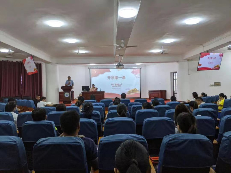 10月2日,宜春广播电视大学党委副书记、校长金文玲为新生讲授“开学第一课”,全体开放教育新生及高职学生共同聆听。
