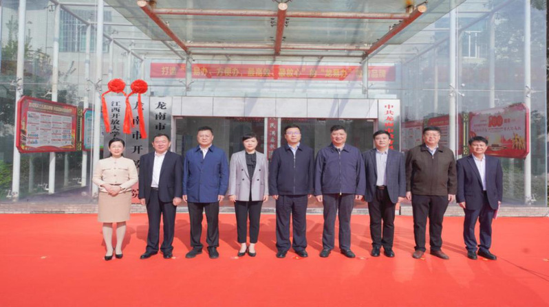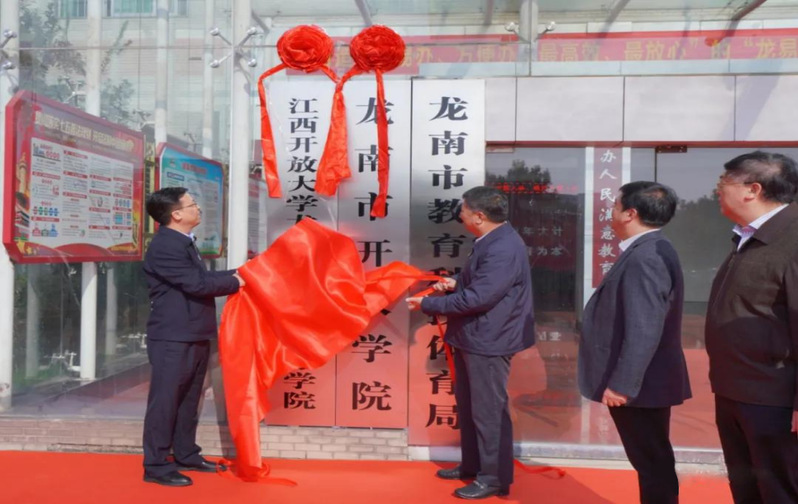 10月26日上午,必赢76net线路官网龙南新兴产业人才学院和龙南市开放学院在龙南市举行揭牌仪式。校党委副书记、校长黄平槐,龙南经开区党工委副书记、管委会主任、市委书记钟旭辉出席仪式并共同为必赢76net线路官网龙南新兴产业人才学院和龙南市开放学院揭牌。校党委委员、副校长冯豫红,龙南经开区党工委副书记、市委副书记、市长彭江闽,校发展规划处杨立强,党委办公室、校长办公室副主任张小玲,赣州开放大学党委书记黄国杰,党委委员、副校长钟贤才,市政府副市长余美华等出席揭牌仪式。揭牌仪式由龙南市委常委、宣传部长陈柯主持。