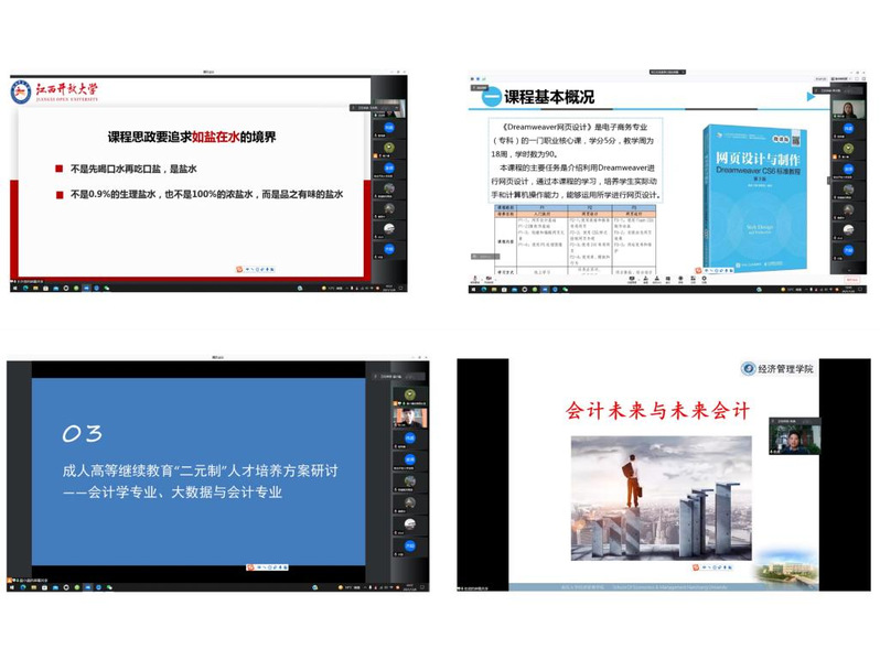 会议上半场,教务处处长曾宪宁通过各种案例对学位论文的选题、撰写进行指导,加深了经管类教师对学位论文评审标准的理解与运用,有助于提升学位申报率;国家开放大学首届经管类专业课程思政教学设计大赛一等奖获得者王亦男、单文丽老师结合自身教学实践进行课程思政经验分享,探讨如何从小处入手,挖掘专业课程中的思政育人资源,在知识传授中实现价值引领;高等继续教育“二元制”会计本、专科专业责任教师分别对人才培养方案的制定和内容进行简要介绍,分享江西开大为培养紧密贴合行业发展,适应职场、适应社会的“二元制”会计专业人才的新思路与新模式的构建。
