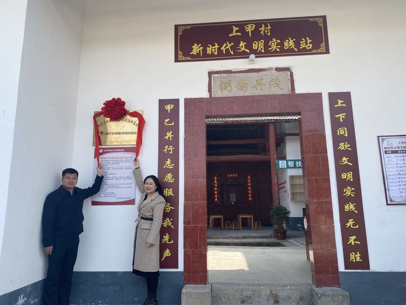 调研结束后,在上甲村新时代文明实践站举行必赢76net线路官网团委助力乡村振兴社会实践活动基地揭牌仪式,肖咏桦与文峰乡党委书记谢小明共同为基地揭牌。