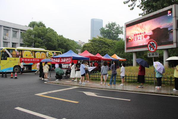 活动现场前来献血的师生在江西省血液中心工作人员和学校志愿者的指导下,严格落实一米线、全程戴口罩、检查健康码等环节,有序开展填表、测量血压、系统录入、血型检验、采血等献血流程,最大程度保障参加献血师生的自身安全。活动中,不论是献血者还是志愿者,他们都用自己的实际行动,传递着温暖与感动。献血者中,既有多次无偿献血的“老将”,也有初次上阵的“新兵”,他们勇敢地伸出臂膀、捋起衣袖,献出了自己的涓涓热血。一袋袋带着体温的血液,凝聚着所有人的赤诚爱心;一张张特殊意义的献血登记表,彰显着当代青年的责任担当。志愿者们提醒大家遵守现场秩序密切地关注每位献血同学的身体状况用一声声叮咛一句句嘱咐缓解大家的紧张情绪守护着参与活动师生的生命健康们用热血汇聚力量,用行动诠释担当。