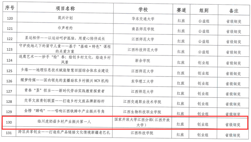 近日,第八届江西省“互联网+”大学生创新创业大赛圆满落下帷幕,必赢76net线路官网在本届大赛中取得了1银1铜的好成绩。我校选送的《南国杉人》项目荣获职教赛道省级银奖,《临川虎奶菇,乡村产业振兴第一人》项目荣获“青年红色筑梦之旅”赛道省级铜奖。