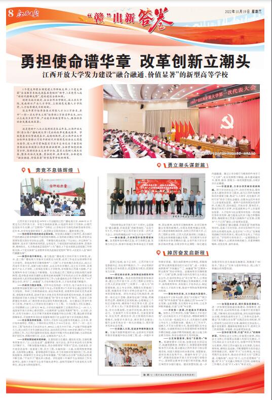 江西日报整版报道学校全面发力建设“融合融通、价值显著”新型高校