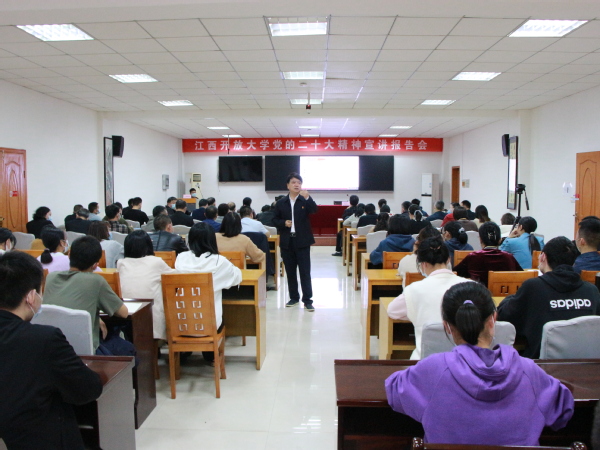 112日下午校党委书记贺瑞虎在人武学院开讲思政课专题宣讲党的二十大精神人武学院院领导师生代表百余人现场聆听人武学院党委书记魏金生主持会议