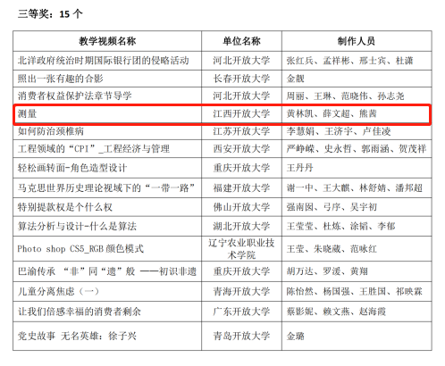 近日,国家数字化学习资源中心公布2021年优秀分中心和优秀个人名单,我校(国家数字化学习资源中心江西分中心)获评2021年度“优秀分中心”称号,我校教师黄林凯的视频课程荣获三等奖。