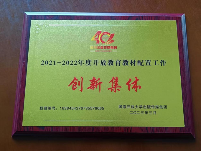 3月28日国家开放大学出版传媒集团公布了2021-2022年度开放教育教材配置工作先进单位,我校荣获2021-2022年度开放教育教材配置工作创新集体。近年来,学校对教材工作高度重视,严格教材审核选用、精准征订、科学配置教材。通过组织专项监督检查、纳入考评体系、强化考试观测、协同计划调整等手段,教材配置率稳步提升,全面增强教材育人功能,服务高等学历继续教育提质强基。(供稿:学习资源中心 编辑:罗赛 责编:王松华)