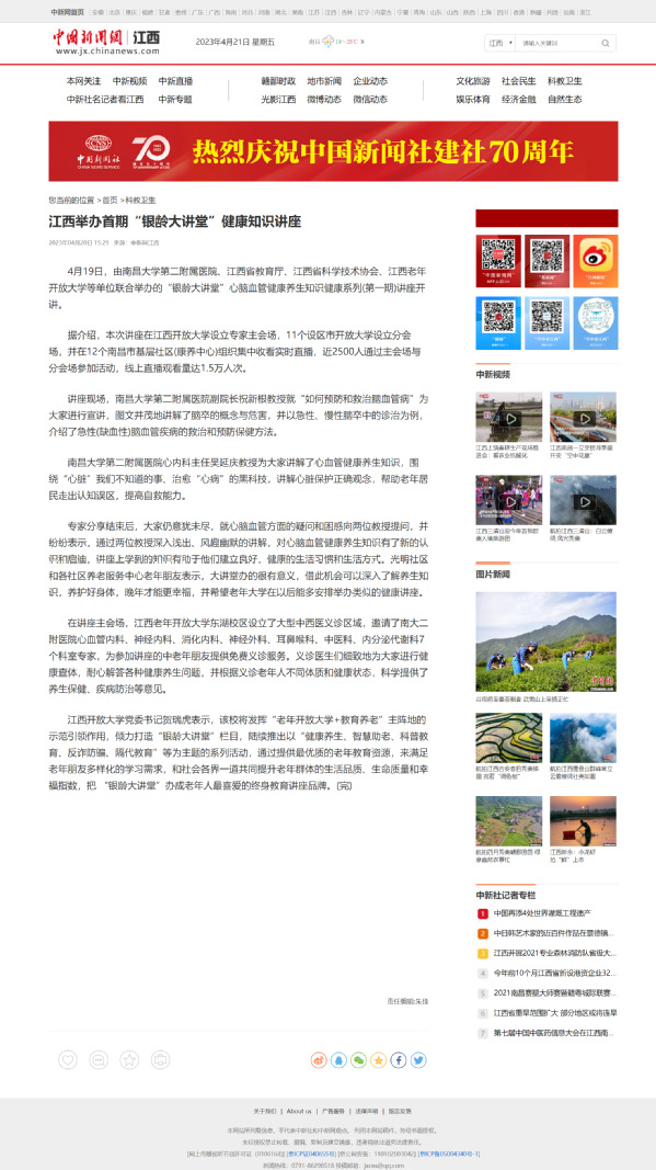 中新网:江西举办首期“银龄大讲堂”健康知识讲座