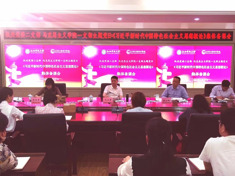4月19日下午,机关党委二支部、马克思主义学院一支部联合开展了“《习近平新时代中国特色社会主义思想概论》集体备课”主题党日活动。校党委副书记邓文君出席并讲话,两个支部的全体党员参加。
