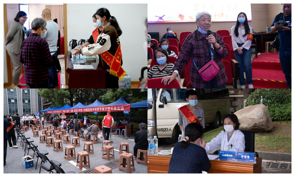 在活动现场,党员志愿者对老人们嘘寒问暖,发放饮用水、扇子等降温用品,详细了解老人们的心声和需求,引导他们到对应的义诊台找专家问诊,切实将党的关怀和温暖送至群众心坎上。