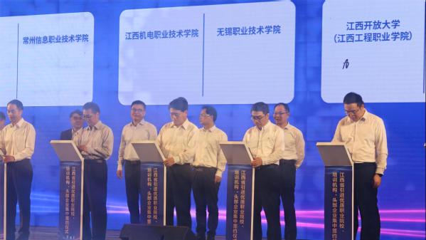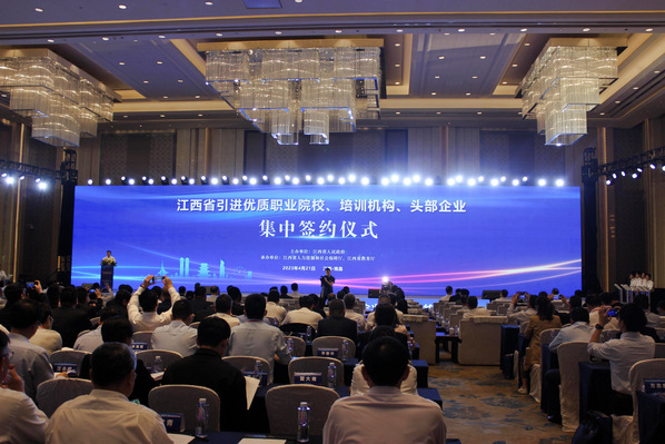 4月21日上午,校党委书记贺瑞虎与上海第二工业大学党委副书记吴沛东参加江西省引进优质职业院校、培训机构、头部企业集中签约大会。省委常委梁桂出席仪式并见证签约,副省长孙洪山主持签约仪式。人社部人力资源流动管理司副司长李祥伟,教育部职成司二级巡视员刘杰,省委办公厅正厅级督查专员张锋,省政府副秘书长杜章彪,省委教育工委书记、省教育厅厅长吴永明,省人社厅厅长蒋斌,省委教育工委委员、省教育厅总督学曹伴好以及国内优质院校、培训机构、行业龙头企业代表等近300人出席仪式。
