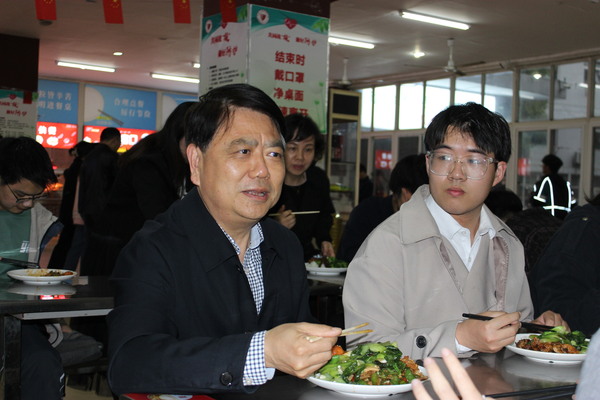 “饭菜味道怎么样?价格贵不贵?”“现在生活上有没有困难,每个月在吃饭上要花多少钱?”......在学生食堂,贺瑞虎与学生们一起就餐,亲切交谈,关切地询问学生们生活和学习情况,了解学生们的心声,听取他们的意见和建议。现场对校园管理处负责人提出要求:一定要进一步加强对食堂食品的管理和监督检查,为同学们提供优质、安全的就餐服务确保学生吃得安心,吃得放心,吃得开心。