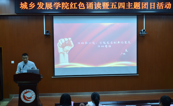 活动在全体师生齐唱国歌《义勇军进行曲》中拉开序幕。活动伊始,副书记梁爽向在座的青年同学们表示节日祝贺,希望弘扬五四精神,做到立志、勤学、诚信,向大国工匠学习,为国家社会发展贡献力量。同时,介绍了“书香城乡,悦读发展” 主题活动的意义,分享了个人读书的感悟,鼓励同学们要多读书,善读书,读好书。