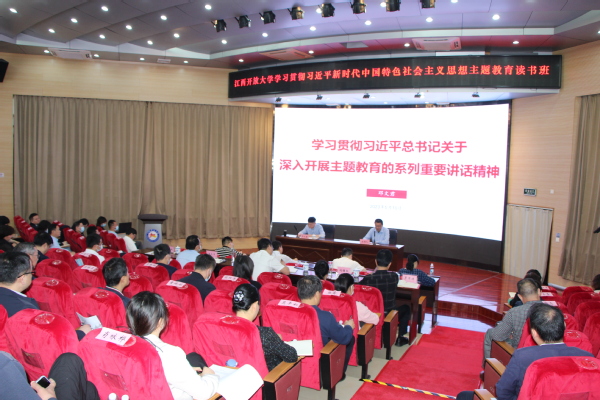 根据学校学习贯彻习近平新时代中国特色社会主义思想主题教育读书班工作安排,510日上午,读书班第三场专题辅导报告在学术报告厅举行校党委副书记邓文君作学习贯彻习近平总书记关于深入开展主题教育的系列重要讲话精神专题辅导报告。党委委员、组织人事部(教师工作部)部长熊江鹏主持辅导报告会。校领导黄平槐、王水平、冯豫红校党委委员罗军涛出席。学校全体处级干部参加。