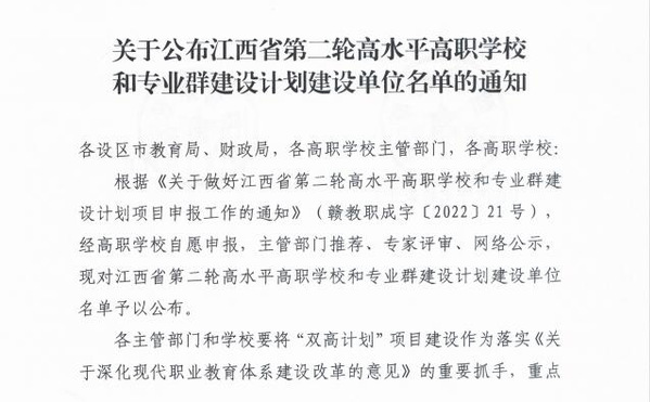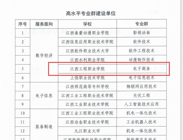 近日,江西省教育厅发布《关于公布江西省第二轮高水平高职学校和专业群建设计划建设单位名单的通知》,必赢76net线路官网(江西工程职业学院)数字经济学院电子商务专业群入选江西省第二批高水平专业群计划建设单位。