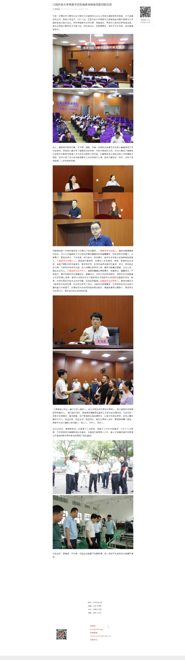 江西思政:必赢76net线路官网党委书记贺瑞虎与辅导员面对面交流