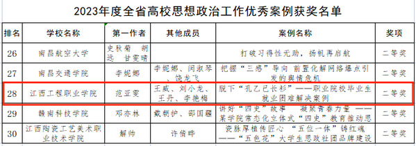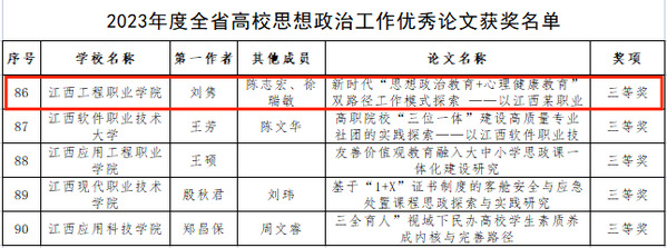 近日,由江西省教育厅组织开展2023年度全省高校思想政治工作优秀论文和优秀案例征集活动落下帷幕。我校2支辅导员团队分别荣获2023年度全省高校思想政治工作优秀案例二等奖和2023年度全省高校思想政治工作优秀论文三等奖。
