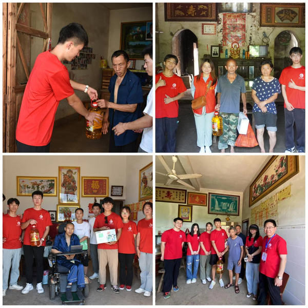 实践过程中,师生们摸底调查了解经济水平思想状态等情况的基础上,带着慰问品分头行动,走访看望了25户贫困户与他们面对面交流,为他们送去关怀走访过程中,队员们了解到茅头村年过花甲的甘燕红老阿姨之前是村里的重点帮扶对象因小儿麻痹双腿终身残疾在政府的帮扶下开起了杂货店,最终摆脱贫困。真实的故事,让队员们切实体会到了党和国家实施乡村振兴战略的现实意义。临别之际老阿姨还祝愿青年学生不断学习、不断进步朴实的话语令学生们深受鼓舞