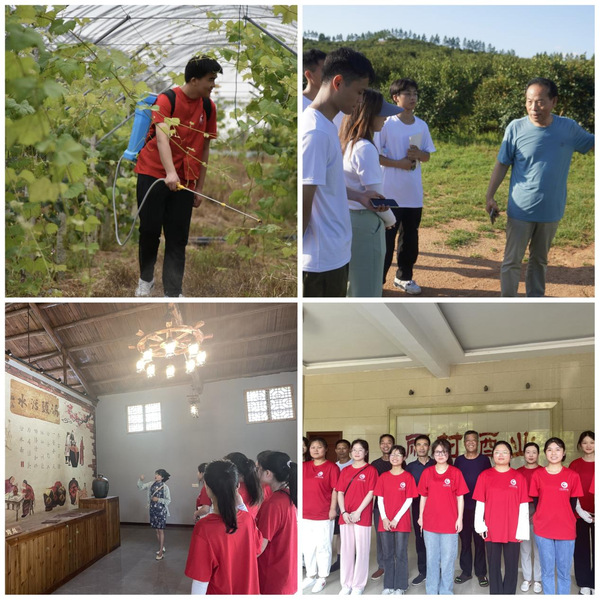“青年学子唯有深入实践,才能深切感受社会前进的脉搏。”实践团队成员们前往丽村镇特色产业基地进行实地调研考察酿酒、油茶以及葡萄园等产业深入感受产业引领乡村振兴的能量。