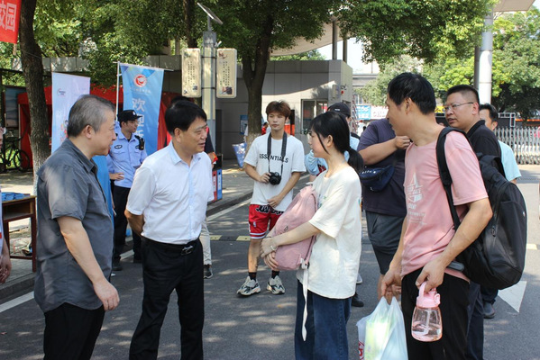 当日上午党委书记贺瑞虎带队深入西湖校区迎新现场看望慰问2023级新同学,深入了解新生入学报到情况,慰问在迎新一线工作的师生。