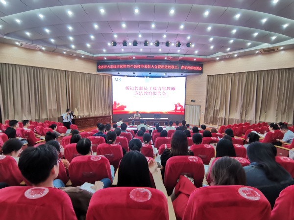 “有位年轻干部成长起点非常好,却没有珍惜组织的信任,精神世界空虚,沉迷网游、花钱‘升级’,甘于被‘围猎’,最终走上了不归路”“选择了教师这份职业,就选择了约束、选择了奉献、选择了崇高。作为青年教师的你们,要扣好‘第一粒扣子’、筑牢第一道防线、定准第一声调子、迈好第一脚步子,自觉做到‘不越雷池半步’……”9月7日下午,校党委委员、纪委书记、监察专员王水平为新进教师和年轻干部作了一场生动的廉政教育报告,拉开了学校2023年廉洁文化宣传月活动的序幕。