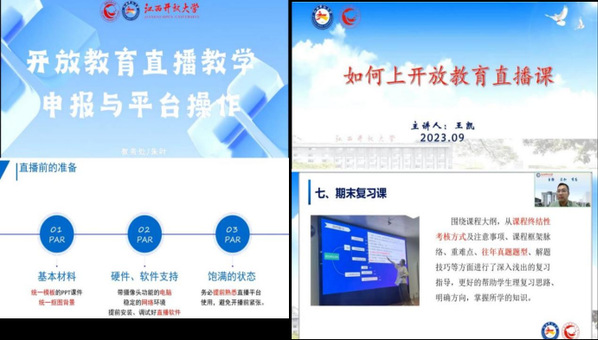 本次培训是在学校《“我为开放教育创优提质履职尽责”专题大调研、大学习、大讨论活动实施方案》指导下,以提高教师业务素养和直播教学水平为目标,围绕直播课平台使用技术、教学规范、教学标准等方面开展的一次大学习活动。培训分为两个部分,一是开放教育直播教学申报与平台操作。朱叶老师从申报流程、课前准备入手,为教师们全面梳理了开展直播课的全流程,并配合直播平台进行实际操作和演示。二是如何上好开放教育直播课。王凯老师结合开放教育直播课的特点,生动地阐述了不同类型直播课讲授的重点、方法。
