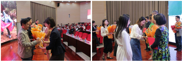 会议宣读了2022—2023年光荣退休的教职工名单;贺瑞虎为荣休教职工颁发荣休证书,青年教师向荣休教职工献花;原直属开放教育学院院长周终东代表荣休教职工发言;城乡发展学院教师成欣代表青年教师发言。