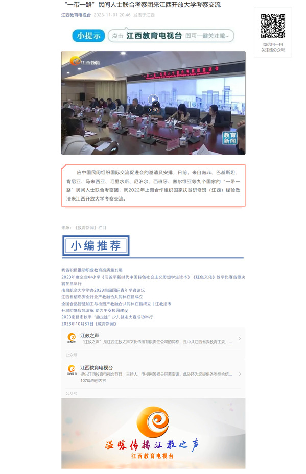 江西教育电视台:“一带一路”民间人士联合考察团来必赢76net线路官网考察交流