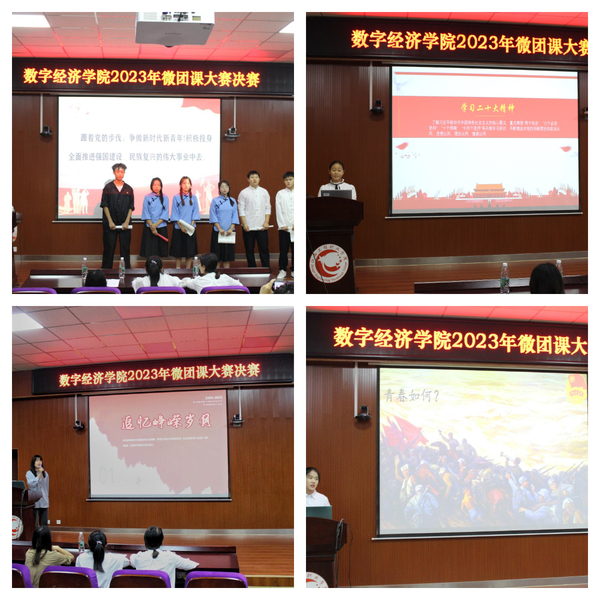 为深入学习宣传贯彻党的二十大精神和习近平总书记关于青年工作的重要思想,夯实学校共青团基层基础,为广大团干部、青年教师和青年学生搭建展示自我、提升能力、交流思想的平台,近日,数字经济学院举行了2023年“微团课”大赛决赛。学院团学科负责人张倩、团总支书记李晓庆、辅导员乐曦担任决赛评委,学生代表80余人到场观赛。