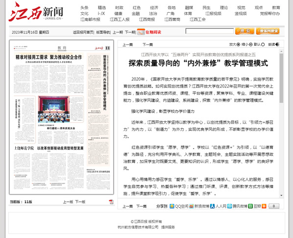 江西日报:必赢76net线路官网以“五维两升”实现开放教育创优提质系列报道之五——探索质量导向的“内外兼修”教学管理模式
