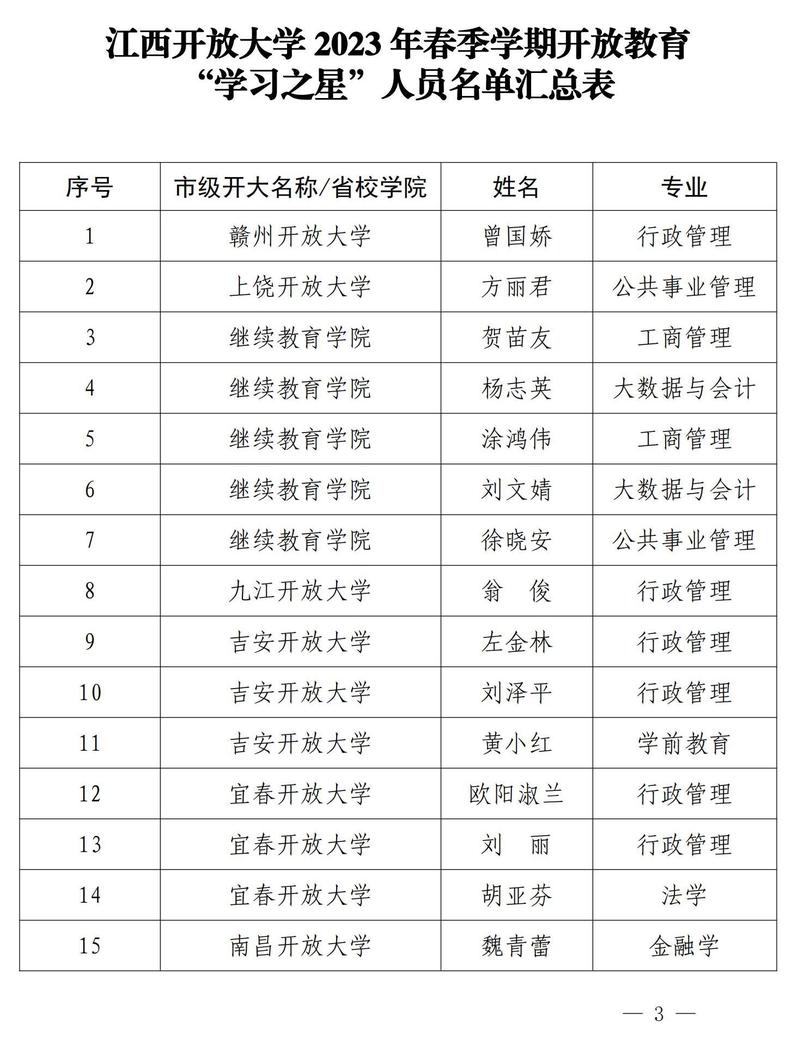 近日,学校公布了2023年春季学期开放教育“学习之星”人员名单,26位同学获选。