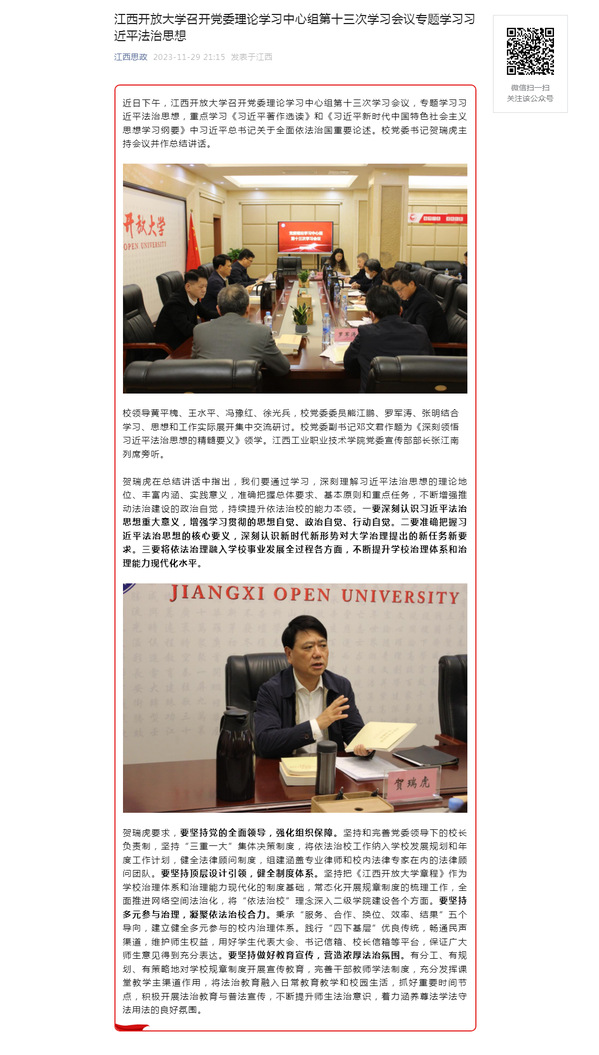 近日下午,必赢76net线路官网召开党委理论学习中心组第十三次学习会议,专题学习习近平法治思想,重点学习《习近平著作选读》和《习近平新时代中国特色社会主义思想学习纲要》中习近平总书记关于全面依法治国重要论述。校党委书记贺瑞虎主持会议并作总结讲话。