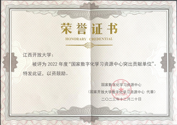 学校连续两年被评为优秀分中心后,今年再进一步,被评为年度突出贡献单位,这既是国家数字化学习资源中心对江西中心资源建设、推广工作的充分肯定,也是我校以数字化目标为引领,不断提质扩容取得的积极成效。