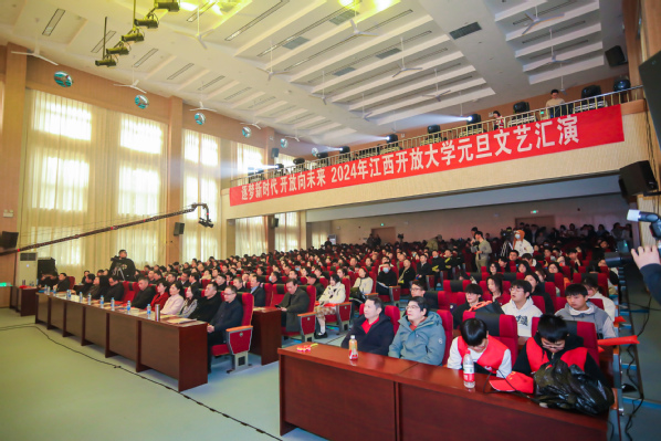 凯歌声声辞旧岁,万象更新焕新颜。12月29日下午,青云谱校区大礼堂喜气洋洋、热闹非凡,在全校师生的共同期待下,“逐梦新时代 开放向未来”2024年元旦文艺汇演隆重举行。省人大常委会、省人大教育科学文化卫生委员会副主任委员、必赢76net线路官网原党委书记易小明应邀出席。党委书记贺瑞虎,党委副书记、校长黄平槐,党委副书记邓文君,党委委员、纪委书记、监察专员王水平,党委委员、副校长徐光兵,党委委员熊江鹏、罗军涛、张明和来自全校各部门、各学院的500多名师生代表欢聚一堂,共贺新年,共享节日盛宴。文艺汇演通过学校公众号同步进行线上直播,近6000名师生及学生家长在线观看。
