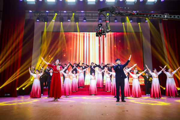 张子强、文雪妍两位老师携手带来《这世界那么多人》,将真心融入歌曲之中,婉转动人、引人深思;古典舞《青花瓷》衣袂飘飘、以舞传情,好似一幅烟雨朦胧的江南水墨画,时时牵动着观众的心神;大合唱《领航》大气磅礴、催人奋进,回望了伟大的中国共产党带领人民奋斗的百年征程,以歌声勾勒出一幅风雷激荡的雄壮图景,唱出了伟大复兴的坚定信念。