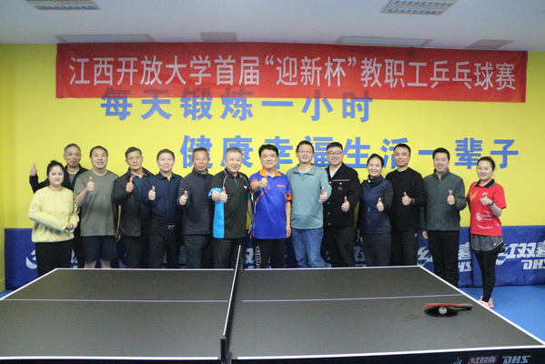 发球、防守、抢攻、扣杀……1月10日下午,学校首届“迎新杯”教职工乒乓球赛在工会活动室圆满落幕。校党委书记贺瑞虎,校党委副书记邓文君,校党委委员、副校长徐光兵,校党委委员熊江鹏参加了比赛,并为获奖团队颁奖。