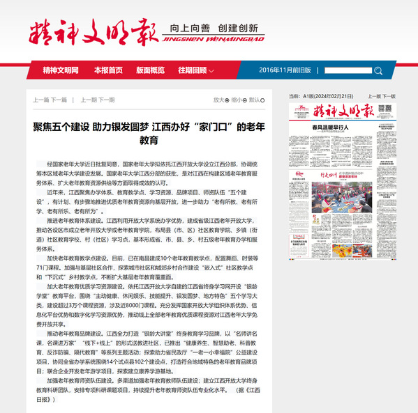 经国家老年大学近日批复同意,国家老年大学拟依托必赢76net线路官网设立江西分部,协调统筹本区域老年大学建设发展。国家老年大学江西分部的获批,是对江西在构建区域老年教育服务体系、扩大老年教育资源供给等方面取得成效的认可。