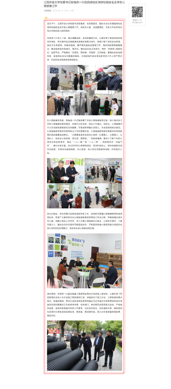 近日下午,必赢76net线路官网党委书记贺瑞虎,校党委委员、副校长徐光兵到西湖校区调研校园安全及学生心理健康工作。党政办公室、校园管理处、学生工作处和相关专业学院负责人陪同调研。原文地址:https://mp.weixin.qq.com/s?__biz=MzI1OTM4MDMzMA==&mid=2247587433&idx=3&sn=525d552c7c87d7730c5fc99392ca965c&chksm=ea7a136cdd0d9a7ad31690d0cbb5976f837a8d7fd270794e764316a5288bc2de034dff9e749b&mpshare=1&scene=1&srcid=0413jTwaPJUyt3UQOO3nR1Wa&sharer_shareinfo=46a8c85121cb81a8d755cc7a22a70f40&sharer_shareinfo_first=46a8c85121cb81a8d755cc7a22a70f40&exportkey=n_ChQIAhIQF6UGMqCiJfEWc0Y4FFVwtRLuAQIE97dBBAEAAAAAAH6dNLV%2FgjsAAAAOpnltbLcz9gKNyK89dVj0VhfCBxw859zC217VAG6VEKXnszFNw9pU5DnONYT599oTv3Xo0BTTMicy5NsXVUNc4o7RUj3tr%2FrW3CNk6b0R%2BZNbhC9nUq3NvvKaZeunTYSO6g%2FAJRi7NzgSaprzEL%2FgN19odamIbflbwQdLuGj3UBbmPPof8LqjVNxBgUgWA76eG9pQhEh5QcbGKx1Q81dY6Pxwx4klwILv%2Fj9avkcFHUbo73nwYsRacUsP%2Fj1yNesPwMnCN%2B%2BE9cng0eSW10d6qBpn3W63ez4%3D&acctmode=0&pass_ticket=gUfalEbekIlS%2BZLwaLT1HVNMRV8unNOx6iWWpkJjBMM4yR20XghcNa%2BsSzdQ7Mm1yZSbjjZciNnHAMnYsadirw%3D%3D&wx_header=0#rd (责任编辑:罗楚颖)